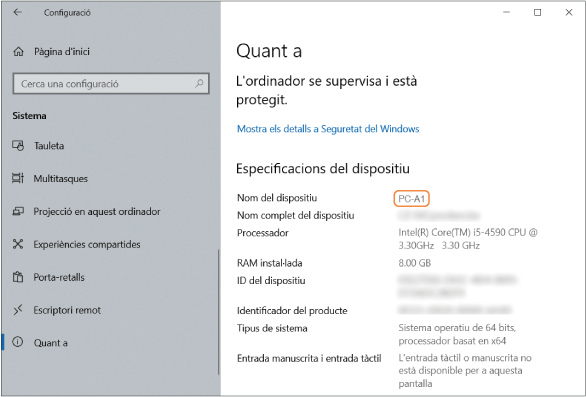 Anoteu el nom de l'ordinador (nom del dispositiu) que es mostra.