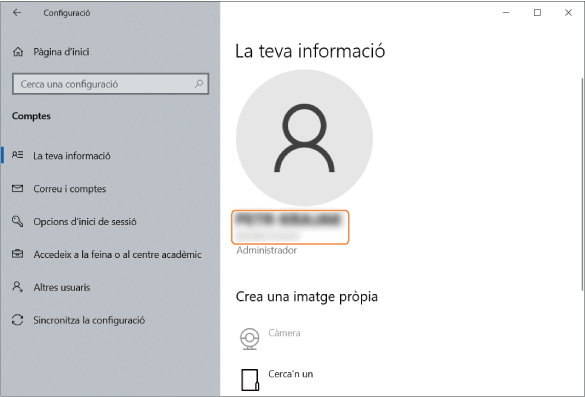 Comproveu el nom d'usuari d'inici de sessió del vostre ordinador.