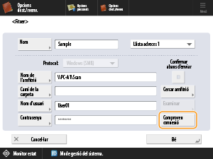 <Nom>Introduïu el nom de la destinació. Com que el nom que heu introduït aquí apareixerà a la llista de la llibreta d'adreces, utilitzeu un nom fàcil de cercar.