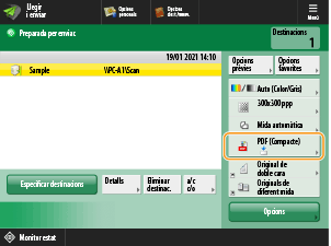 Encara que hi ha vàries opcions d'escaneig, aquesta descripció explica com especificar el format de fitxer.