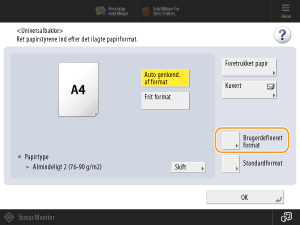 Angiv det samme papirformat, som det papir, der er lagt i maskinens universalbakke.