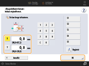 Angiv længden af <X>-siden og <Y>-siden, og tryk på <OK>.