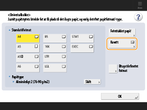 Når du lægger kuverterne i universalbakken, vises skærmen for indstilling af papirformatet. Indstil papirformatet på følgende måde.