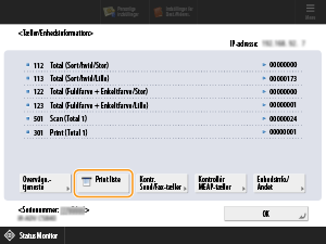 Printning af rapporter om antallet af kopierede, printede, scannede ark