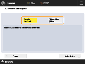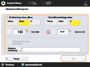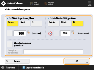Voit tulostaa raportin automaattisesti, kun asiakirjasiirtoja on tehty määritetty määrä (100–1000), valitsemalla <Tulostus> ja määrittämällä lukumäärän.