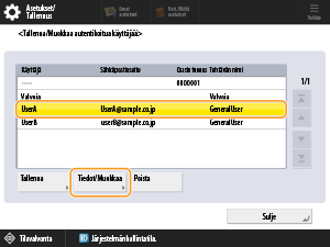 Valitse käyttäjä luettelosta ja valitse <Tiedot/Muokkaa>.