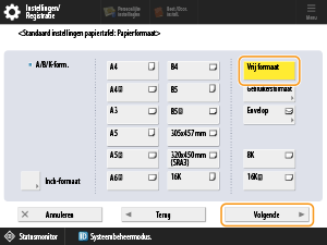 Afhankelijk van uw model kan <Vrij formaat> mogelijk niet worden geselecteerd. Selecteer in dit geval een bestaand papierformaat, zoals <A4> of <LTR>.