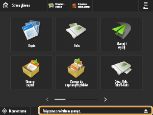 Na panelu sterowania wyświetlona jest wiadomość wskazująca, że nośnik pamięci USB jest podłączony wraz z przyciskiem wysunięcia (