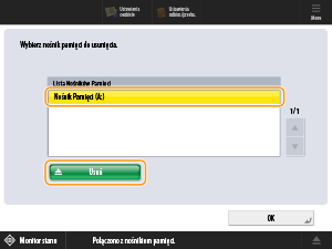 Wybierz nośnik pamięci USB, który ma być usunięty i naciśnij <Usuń>.