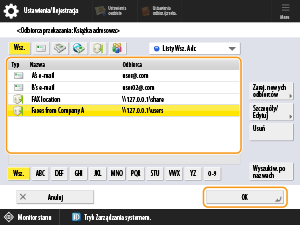 Wybierz odbiorcę z <Osobis. lista adresowa>, listę adresową grupy użytkowników, <Lista Adresowa 1> do <Lista Adresowa 10> oraz <Lista adresowa dla administratora>.