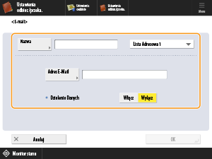 <Lista Adresowa 1> do <Lista Adresowa 10> może być powiązana z 10 osobnymi książkami adresowymi. Rejestrowanie odbiorców na listach adresowych dla każdego departamentu lub partnera biznesowego ułatwia znalezienie odbiorców podczas ich wybierania. Łatwiej jest także zarządzać listami adresowymi poprzez zmianę nazwy departamentu lub partnera biznesowego.