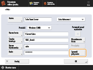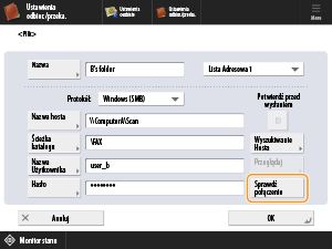 Naciśnij <Sprawdź połączenie> aby sprawdzić połączenie.