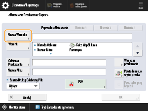 Naciśnij <Nazwa Pliku>, wprowadź „Faksy z Firmy A”, a następnie naciśnij <OK>.