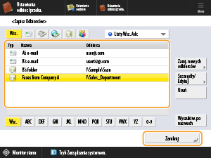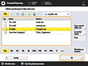 Wybierz odbiorcę z <Osobis. lista adresowa>, listę adresową grupy użytkowników, <Lista Adresowa 1> do <Lista Adresowa 10> oraz <Lista adresowa dla administratora>.
