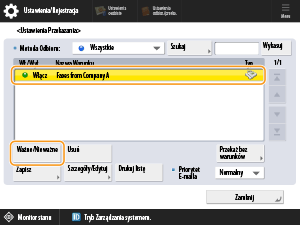 Naciśnij <Nazwa Warunku>, wprowadź „Faksy z Firmy A”, a następnie naciśnij <OK>.