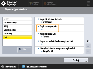 Numer faksu dla linii 1 jest już zarejestrowany. Następnie zapisz nazwę urządzenia.