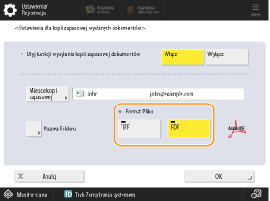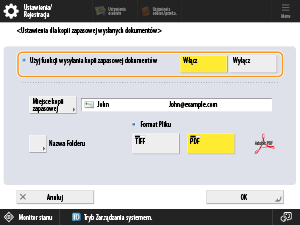 Naciśnij na <Włącz> w <Użyj funkcji wysyłania kopii zapasowej dokumentów>.