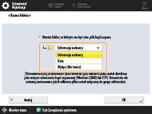 Naciśnij <Nazwa Folderu>, określ typ folderu w którym mają zostać zapisane dokumenty kopii zapasowej, a następnie naciśnij <OK>.