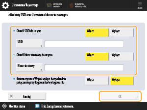 W opcji <Użyj Osobis. SSID oraz Ust. klucza siecio.>, wybierz <Wyłącz>.