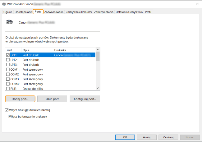 W oknie dialogowym [Porty drukarki], kliknij na [Zakończ].