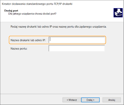 Wprowadź [Printer Name or IP Address] i kliknij przycisk [Dalej]