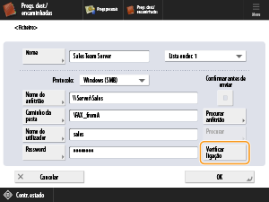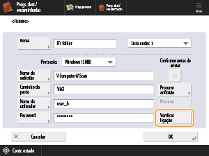 Se definir <Protocolo> para <Windows (SMB)> e, em seguida, especificar uma pasta inexistente em <Caminho da pasta>, uma pasta é criada automaticamente e o ficheiro é gravado na pasta criada. No entanto, se especificou pastas inexistentes em vários níveis, ocorrerá um erro de envio.