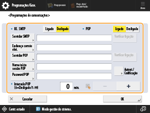 Após definir as programações, verifique a ligação <Servidor SMTP> ou <Servidor POP>.