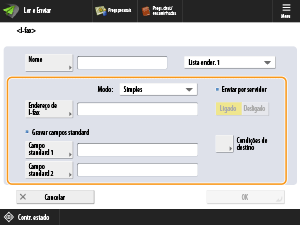 Selecione <Cheio> caso pretenda verificar se um I-Fax foi entregue à máquina do destinatário, ou selecione <Simples> se pretender verificar se um I-Fax foi entregue a um servidor de correio. Note que não pode verificar os resultados de envio se a máquina do destinatário não suportar a função <Modo:>.