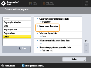 Registar o Nome da Unidade e o Número do Fax para a Linha 1 do Fax