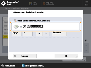 A descrição fornecida aqui é para gravar nomes de unidades e números de fax para várias linhas de fax no seguinte exemplo: