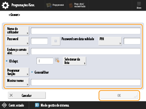 Grave as informações do utilizador a partir da Remote UI (Interface Remota) ou do painel de controlo desta máquina. Para gravar um item, utilize a Remote UI (Interface Remota). Embora possa utilizar o painel de controlo desta máquina para gravar informações do utilizador, não o pode utilizar para gravar todos os itens.