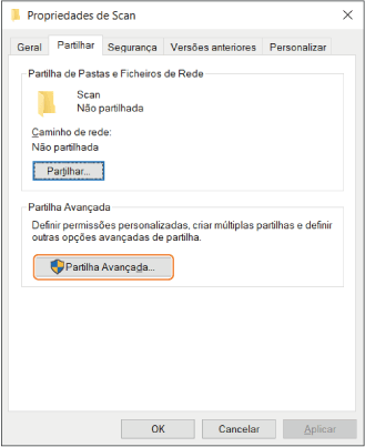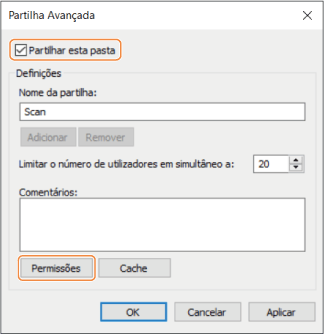 Marque a caixa de seleção para [Partilhar esta pasta] e clique em [Permissões].