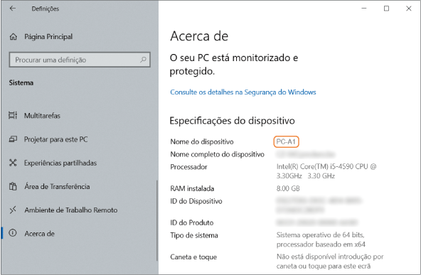 Anote o nome do computador (nome do dispositivo) apresentado.