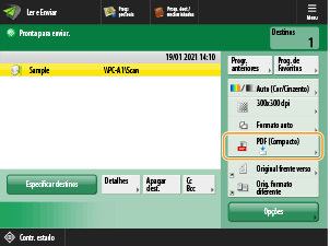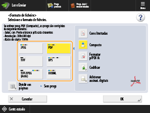 Quando <PDF>, <XPS>, ou <OOXML> estiver selecionado, também pode definir várias funções adicionais. Para especificar as programações, selecione a função a ser adicionada.