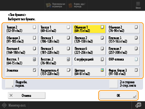 Выберите тип бумаги и нажмите кнопку <OK>.