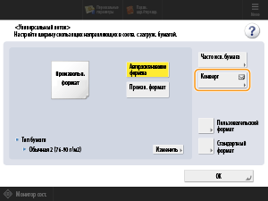 При загрузке конвертов в универсальный лоток отображается экран установки формата бумаги. Задайте формат бумаги, как показано ниже.