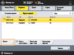 Выберите задание факса, сведения о котором необходимо проверить, и нажмите <Детали>.