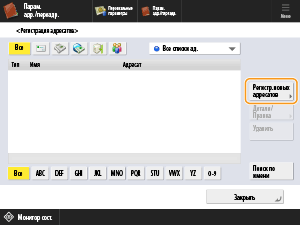 Нажмите кнопки <Регистрация адресатов>