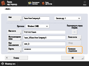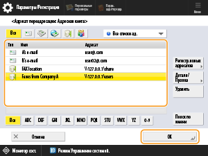 Выберите зарегистрированную папку «Факсы от компании A» в качестве адресата переадресации и нажмите кнопку <OK>.