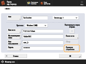 Нажмите <Проверка соединения>, чтобы проверить соединение.