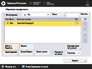 Выберите «Факсы от компании A», нажмите <Действ./Недейств.> и задайте для условия переадресации значение <Вкл.>.