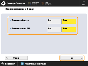 Нажмите <Использовать IP-факс>, а затем — <Вкл.>.