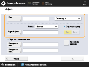 Этот параметр необходим, если при отправке IP-факсов в качестве адресатов будут указаны адреса URI. Установите для данного параметра значение <Вкл.>, чтобы зарегистрировать адреса URI.
