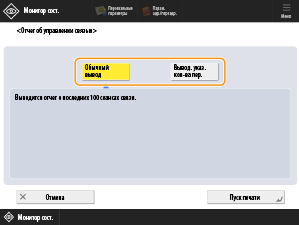 Чтобы распечатать 100 самых новых отправленных и полученных записей, нажмите <Обычный вывод>.