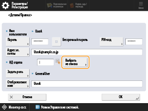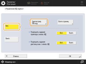 Управление ИД отделов выполняется для зарегистрированных имен пользователей. Убедитесь, что ИД отделов назначены пользователям, зарегистрированным на данном аппарате.