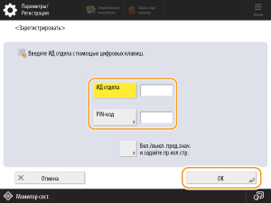 Введите ИД отдела и PIN-код, а затем нажмите кнопку <OK>.