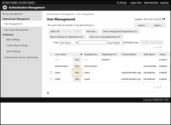 Выберите пользователя в списке и нажмите кнопку [Edit].