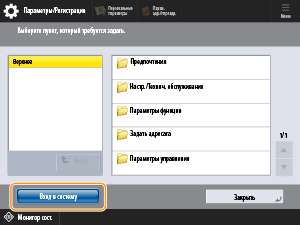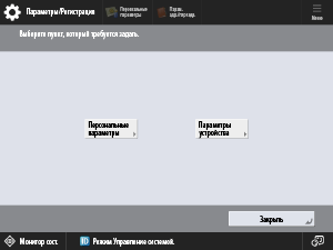 Раздел <Персональные параметры> или <Параметры устройства> отображается на экране «Параметры/регистрация», только если в систему вошел администратор. После выбора одного из этих разделов соответствующие параметры больше не отображаются после вашего входа в систему. Если вы выйдете из нее и повторно выполните вход, экран для выбора параметров <Персональные параметры> или <Параметры устройства> появится снова.