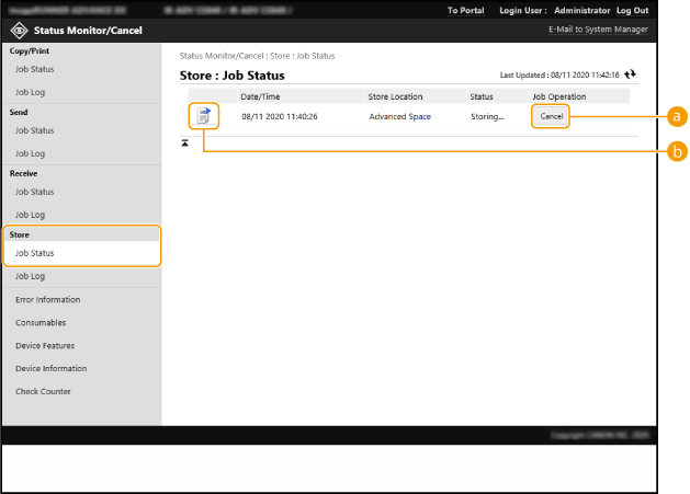 [Job Operation][Cancel]: отмена копирования или печати. Отмененный документ удаляется без возможности восстановления.