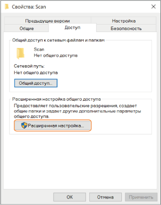 Отправка отсканированных документов в общую папку на компьютере (Windows 10)